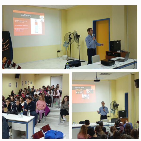 Στα πλαίσια των δράσεων του ενεργού πολίτη με θέμα την "διατροφή στην εφηβεία" προσκαλέσαμε την Τρίτη 1 Απριλίου 2025 στο σχολείο μας τον διατροφολόγο κ.Νικο Δήμο να μας μιλήσει για την διατροφή στην εφηβεία και στον Αθλητισμό. Στο Αμφιθέατρο του σχολείου έγινε παρουσίαση του θέματος από τον κ.Δήμο με προβολή οπτικοακουστικού υλικού. Μετά το πέρας της διαδραστικής ομιλίας οι μαθητές/τριες της Α' Γυμνασίου διατύπωσαν πολλές ερωτήσεις καθώς το θέμα τους κέντρισε το ενδιαφέτον και ειχε άμεση σχέση με τη ζωή τους. Με τεκμηριωμένο επιστημονικό λόγο ο κ Νίκος Δήμος έδωσε σαφείς απαντήσεις και διαφώτισε τους προβληματισμούς τους.