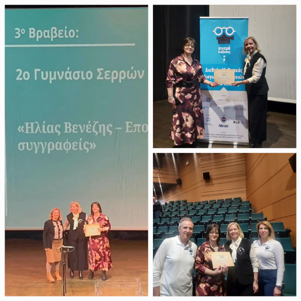 Το 2ο Γυμνάσιο Σερρών απέσπασε το 3ο Πανελλήνιο Βραβείο στην κατηγορία "Δευτεροβάθμια Εκπαίδευση, Ταινίες τεκμηρίωσης" με την ταινία μικρού μήκους "Εποχές και συγγραφείς, Ηλίας Βενέζης". Συμμετείχαν αλφαβητικά η Κουκουτούδη Παρασκευή, ο Ναλμπάντης Χρήστος και ο Πανάγος Θοδωρής.